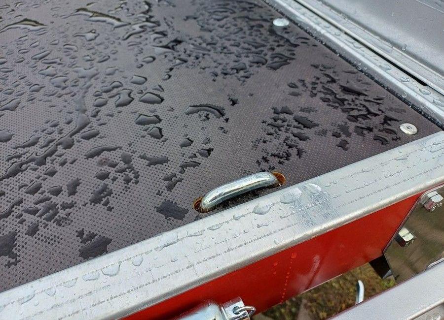 Opis produktu: TRANSPORTER 3015/2 0,75T Masa własna - 297 kg Ładowność - 453 kg Wymiary skrzyni ładunkowej Długość - 304 cm Szerokość - 151 cm Wysokość - 40 cm Ogumienie 155/70 R13 Zawieszenie - 2 oś N 750 kg PODWOZIE układ jezdny: 2 osie niehamowane 750 kg zawieszenie: niezależne, uresorowanie na wałku skrętnym dyszel: typu V stały koła pod podłogą koło podporowe NADWOZIE Rama nośna: stal konstrukcyjna, profil zamknięty, skręcana, blacha ocynkowana gięta na zimno powierzchnia transportowa ze sklejki wodoodpornej o grubości 9 mm burty: blacha stalowa cynkowana, wszystkie burty otwierane i demontowalne