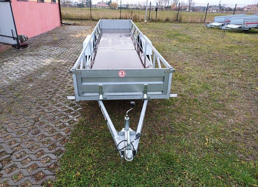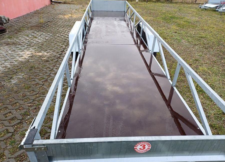 Sprzedam przyczepę dłużycę 2 osiowa 612 cm x 124 cm x 40 cm, Sklejka wodoodporna i antypoślizgowa na podłodze. Wymiary i specyfikacja: DMC: 750 kg Wymiary wewnętrzne: 612 x 123 x 40 cm Koła: 13 ” Osie: 2 Burty: stalowe, skrzynia ładunkowa wzmacniana dodatkowymi relingami. Tylna i przednia burta dodatkowo oblachowana - sztywna Przyczepa posiada wzmocnione koła (index 500 kg każde) oraz renomowane lampy zespolone Powszechnie w naszych przyczepach montowane są profesjonalne zapięcia burtowe Oś wzmacniana firmy KNOTT zabezpiecza wytrzymałą i długotrwała eksploatację Do budowy przyczepy zastosowano bardzo mocne profile zamknięte Zabezpieczenie antykorozyjne wykonano najlepszą metodą ...