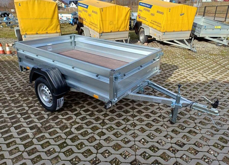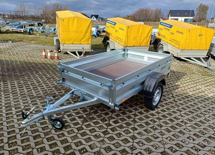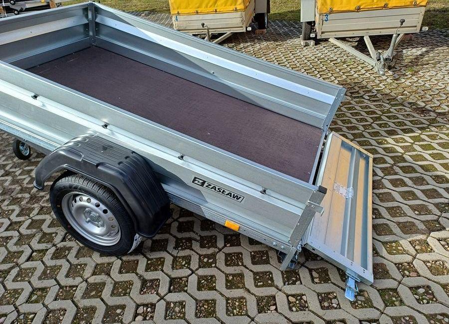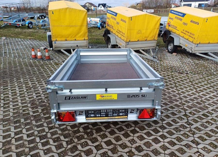 Sprzedam przyczepę towarową jednoosiową ZASŁAW 205SU 205x122x35. PARAMETRY TECHNICZNE: Model przyczepy 205SU. Rok produkcji 2024 Wymiary skrzyni ładunkowej (cm) - 205x122x35 Masa własna - 155 kg Dopuszczalna masa całkowita (DMC) - 750 kg Ładowność - 595 kg Długość skrzyni ładunkowej wew. - 205 cm Szerokość skrzyni ładunkowej wew. - 122 cm Wysokość - 88 cm Długość całkowita - 313 cm Wysokość platformy od podłoża - 53 cm Wysokość burt - 35 cm Rozmiar ogumienia - 155/70R13 Osie - 1 Opcje płatne: Plandeka płaska: 300 zł Plandeka ze stelażem 800mm: 990 zł Koło zapasowe: 380 zł Model 205SU posiada : oś o DMC 750kg, uchylną skrzynię i otwieraną przednią burtę oraz syste...